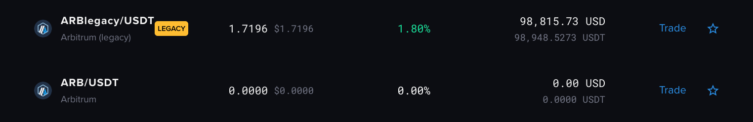 The upgrade impacts several markets, namely SOL, ARB, and WMATIC. To distinguish these affected markets, the original listings for these assets will be marked with a "Legacy" tag. As a result, the SOL market listing will be denoted as "SOLlegacy," the ARB market as "ARBlegacy," and the WMATIC market as "WMATIClegacy."